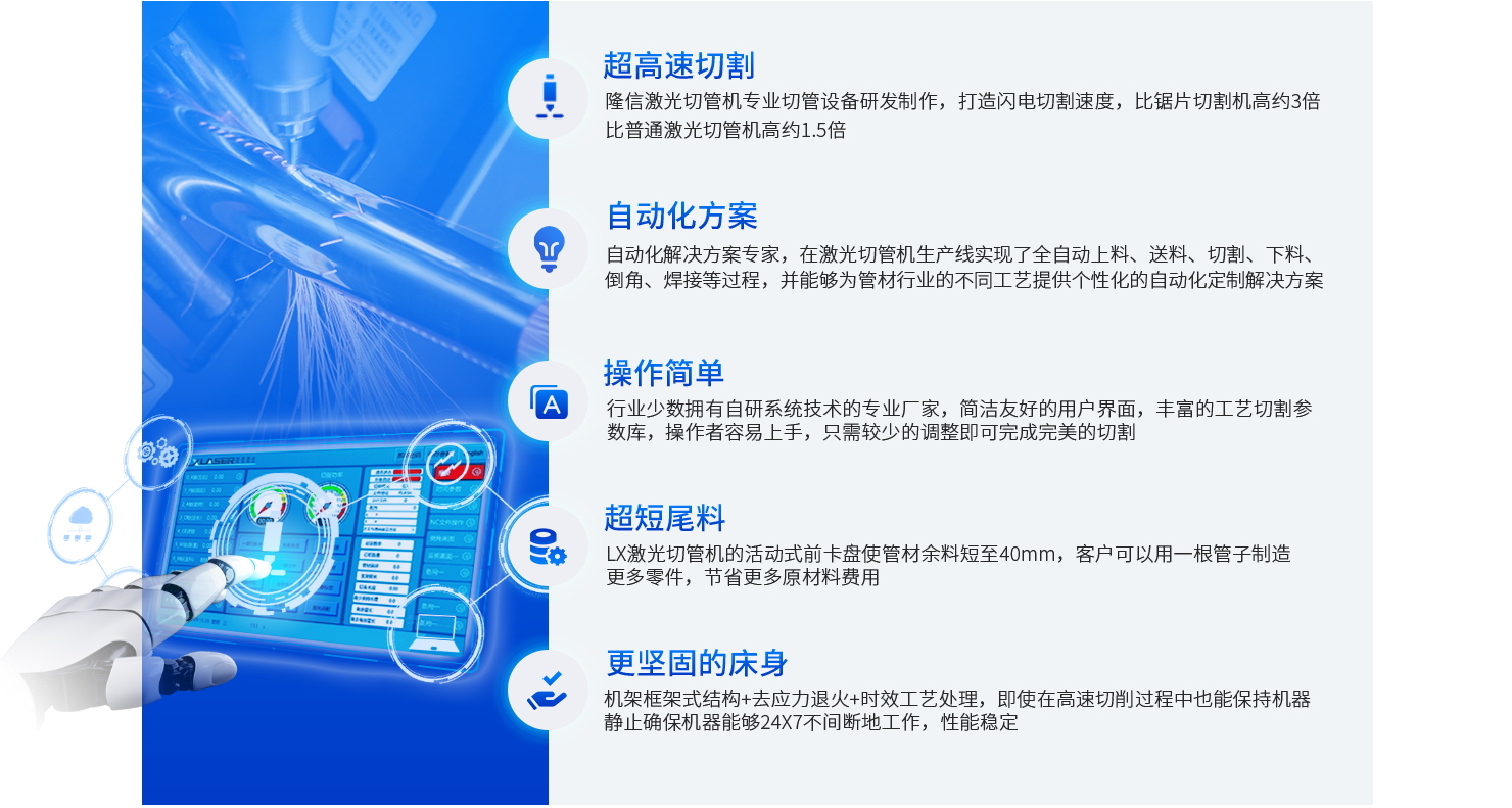 管材加工智能生產(chǎn)線,高度靈活的模塊化設(shè)計,多環(huán)節(jié)集成一體,實現(xiàn)自動化生產(chǎn),減少人力成本,提高效率。可根據(jù)行業(yè)需求定制,多種智能加工模式助力企業(yè)快速投產(chǎn)。